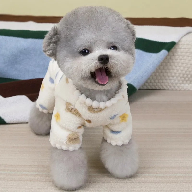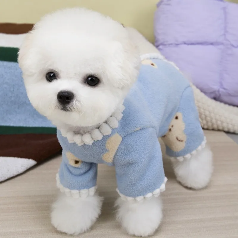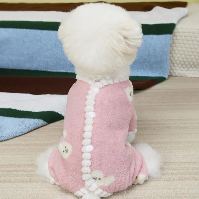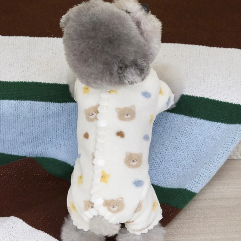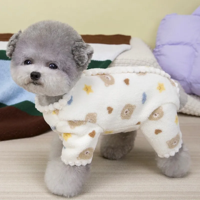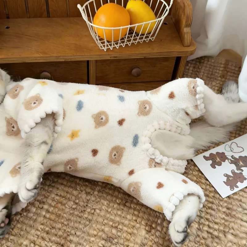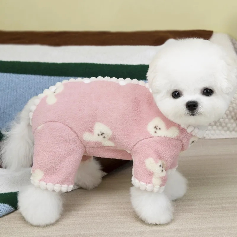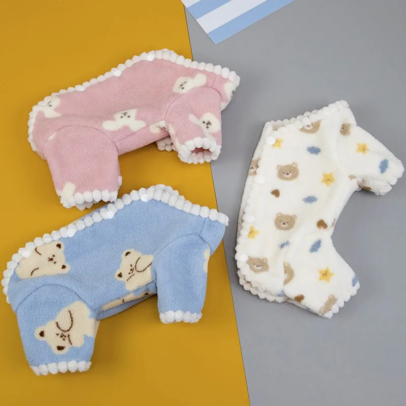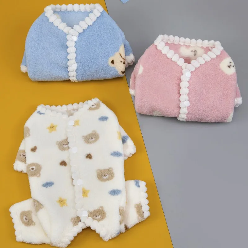 Fleece Dog Pajamas Cute Bear Rabbit Print Four Legged Dog Clothes Autumn Winter Warm Coat for Dog Cat Chihuahua Pet Jumpsuit
