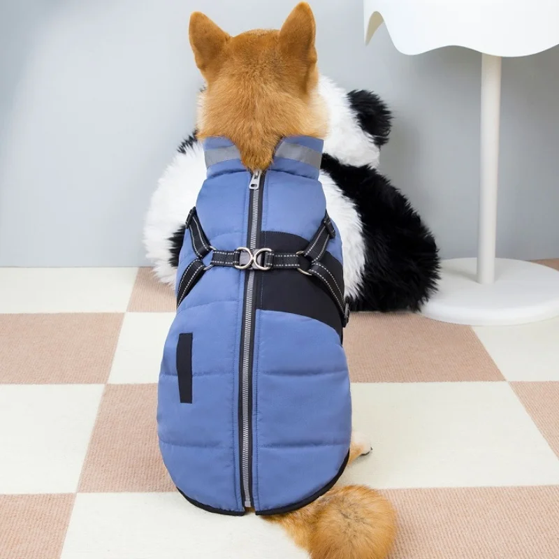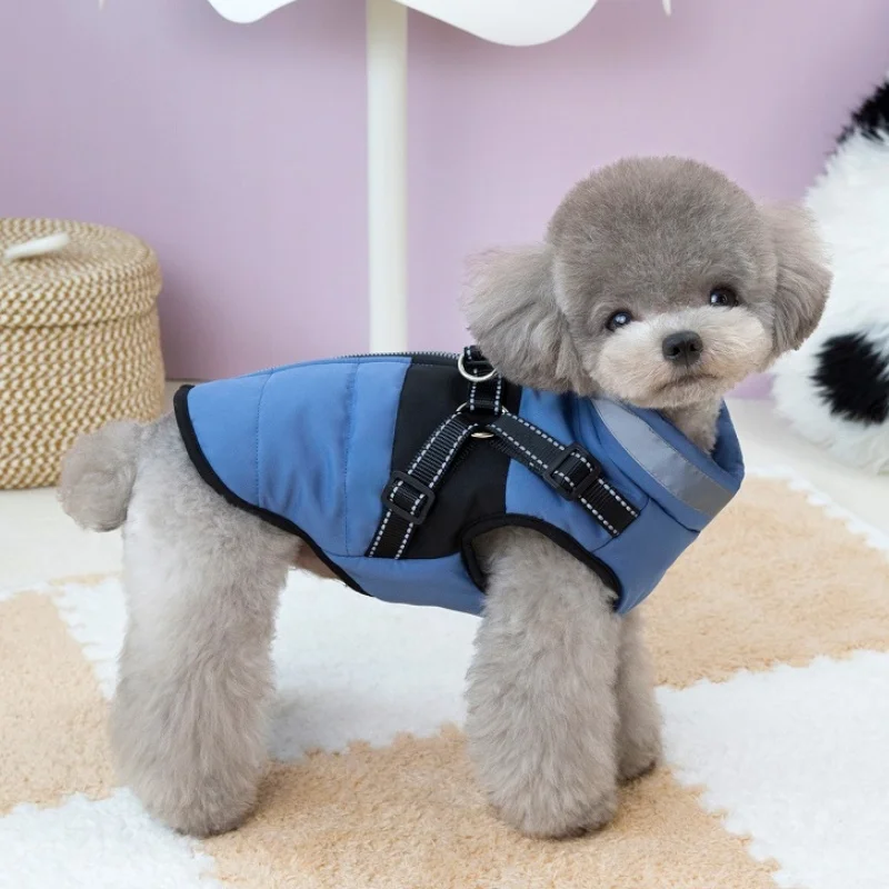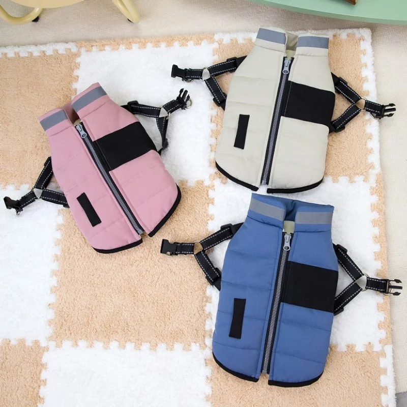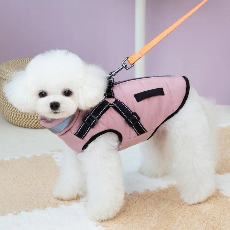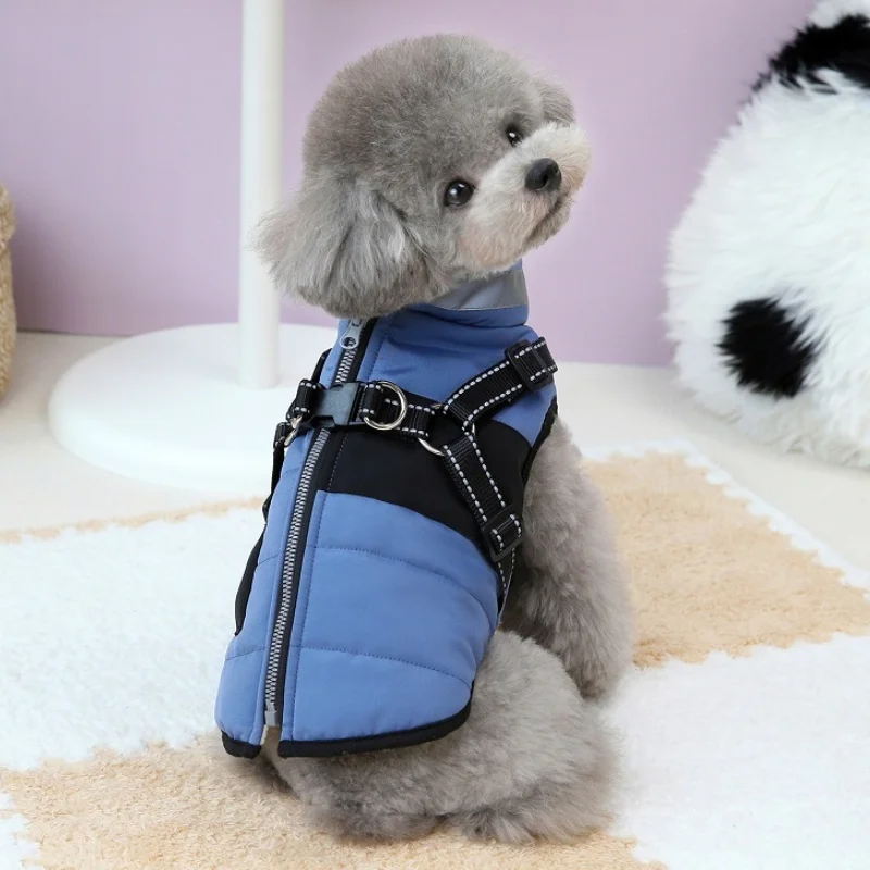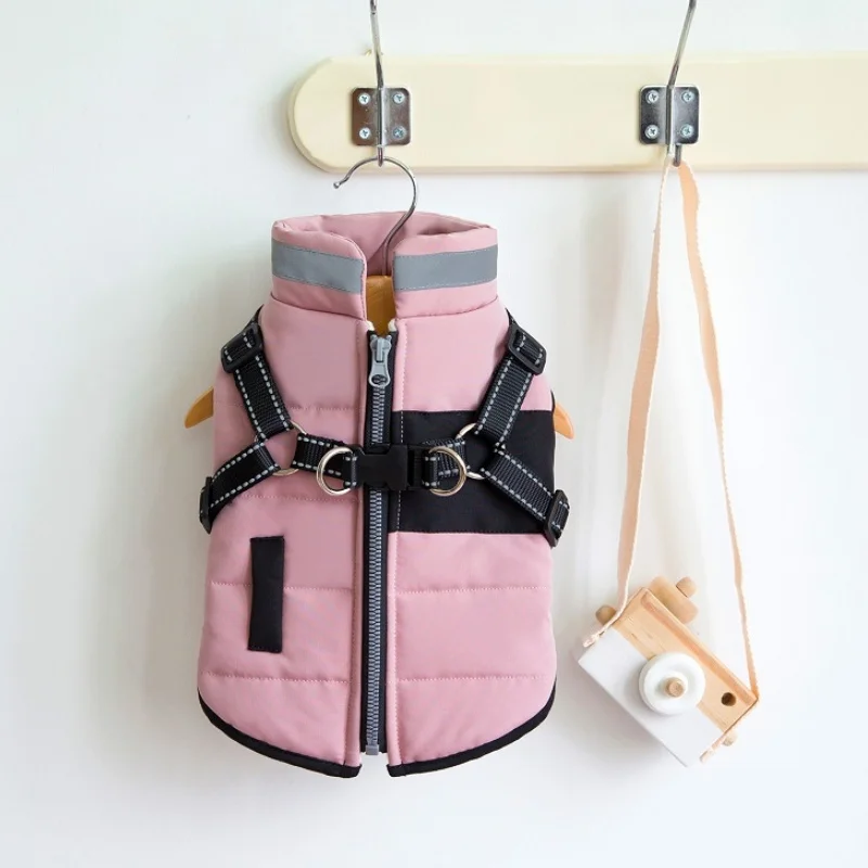 Pet Dog Jacket with Harness Padded Winter Warm Dog Clothes Reflective Puppy Cat Vest Zipper Jacket Pet Down Coat Chihuahua Coat