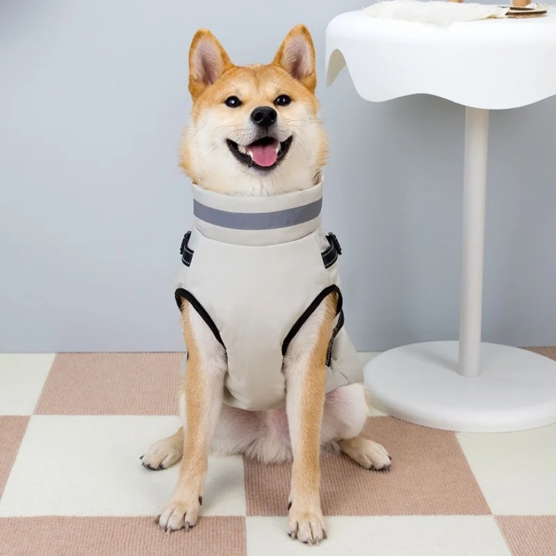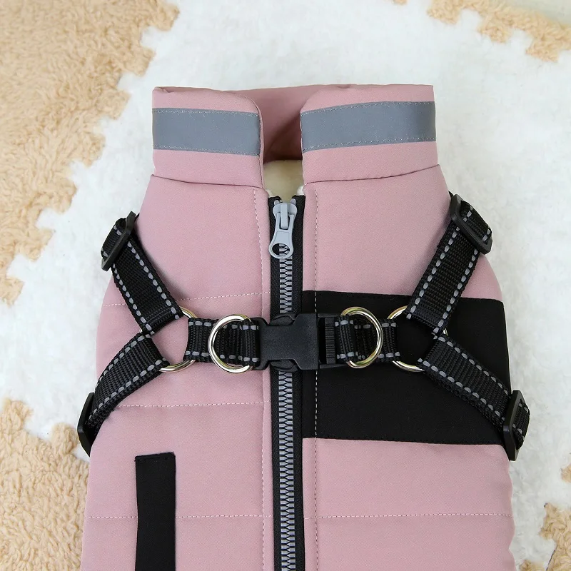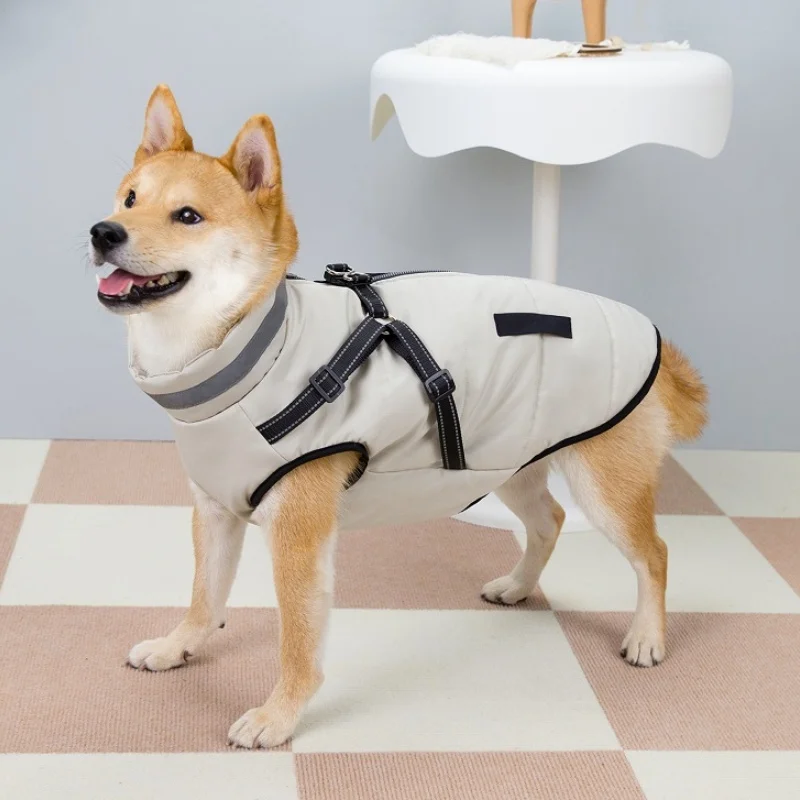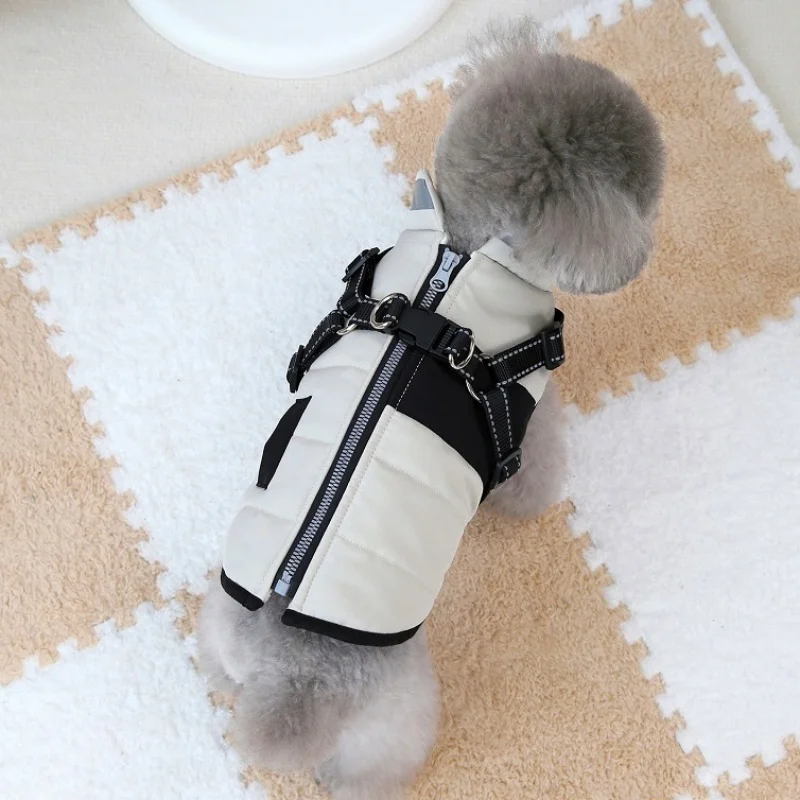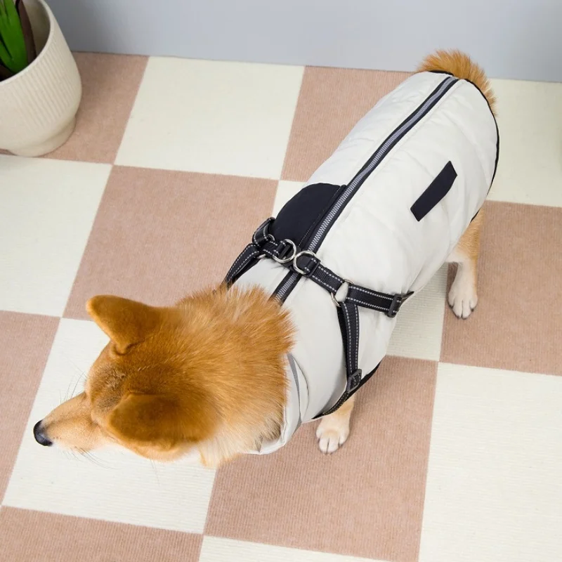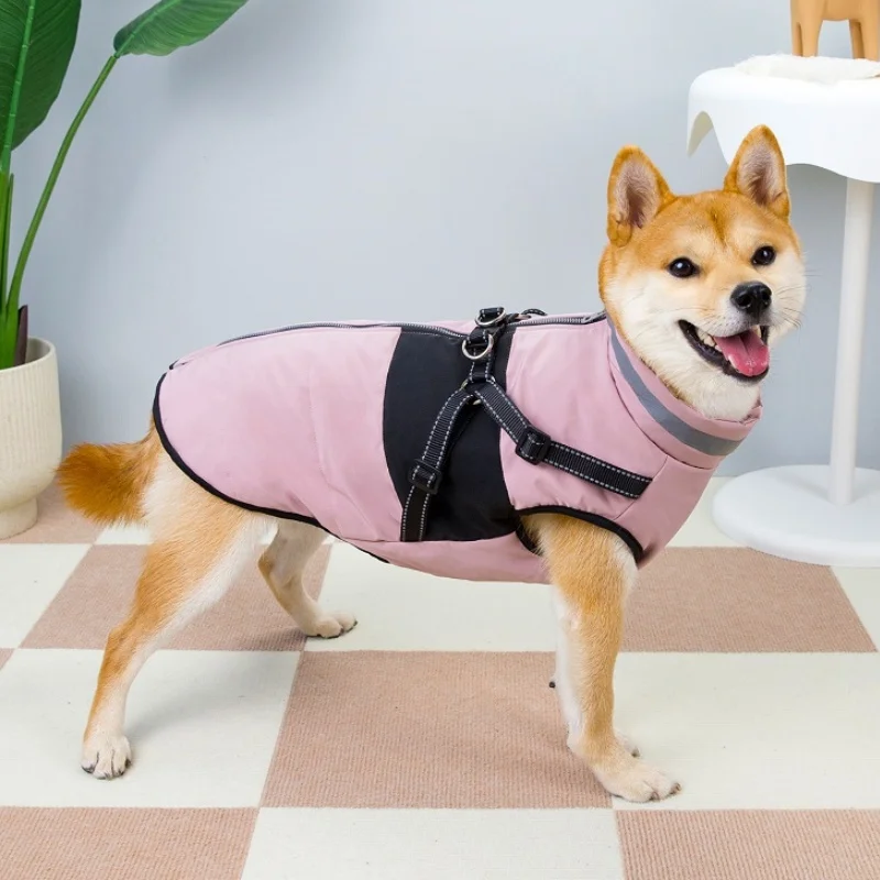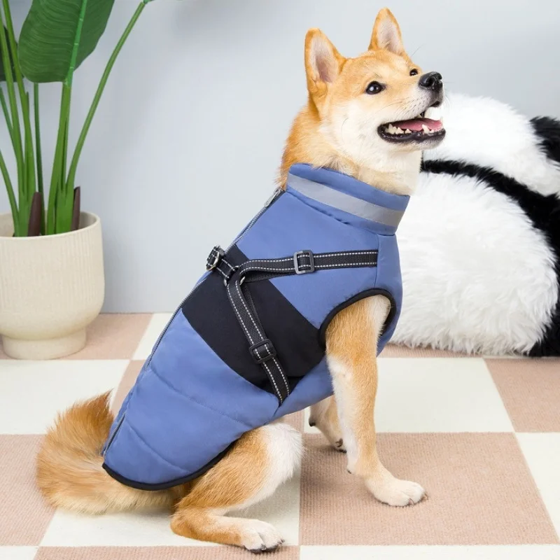 Pet Dog Jacket with Harness Padded Winter Warm Dog Clothes Reflective Puppy Cat Vest Zipper Jacket Pet Down Coat Chihuahua Coat